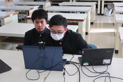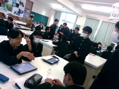 天草高校では「研修日課」が考査前1週間の週に設けられています。その2回目の研修日課である今日は、午後の時間を使って2つの研修が行われました。
