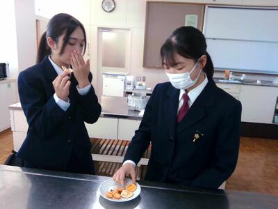 The room looked like an "in school orange factory.” (As you might know, our city, Amakusa, is famous for its orange production.) We wondered what each group was doing there. One group said that they were trying to make "orange perfume" and another said they were to make "orange bath salts." There was another group baking scones using soy pulp (this was the only group without oranges), and another group baking pies using oranges and pumpkins. Anyway, each group was trying to make the best use of their limited time to create something before the coming exams.