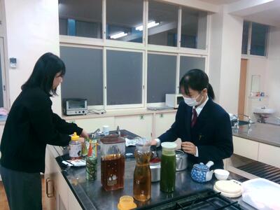 今日はドライフルーツ班、初めての実験! 実験といっても液体を混ぜて気体を発生させる...などというものではなく、5種類のお茶を飲んでもらい、それぞれの味やおいしさについてアンケートをとるというものです。