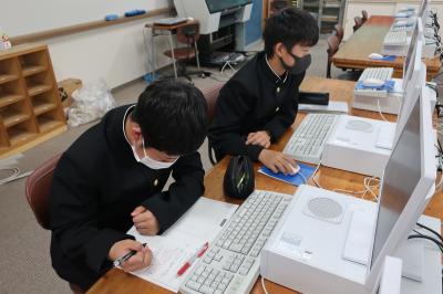 1年生が2年生の指導の下、テーマ設定を進めています。