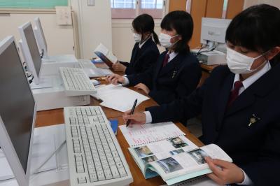 それぞれの班に別れて J Stage などから論文検索をして、自分たちの研究の参考になる論文を調べました。