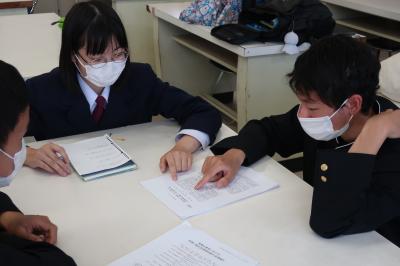 今回は、SSH生徒研究発表会とサイエンスインターハイ@SOJOの2つが紹介され、生徒たちは応募要項を見ながら話し合いを行いました。