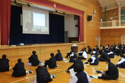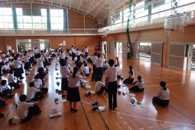 講演の後には本校職員とともに生徒全員で祭りを実演しました。