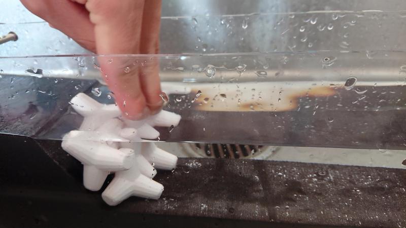 そのような中、波力発電班は、自分たちで設計した歯車を、3Dプリンターで造形していました。
