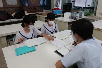 前半は課題研究評価を受け、後半は先行研究・研究計画立案を行いました。