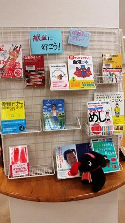 関連して、図書館でも血液のしくみや闘病記を並べた特集コーナーを設置したところ、手に取る人が増えています。