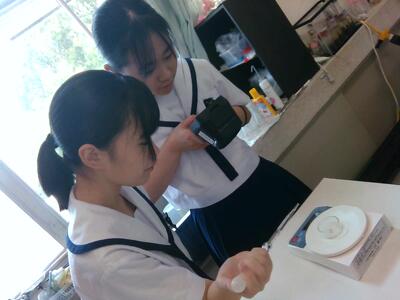 After school today, the students gathered in the Earth Science Room to review the progress of their research and slides, and to confirm what they need to do for the summit. The photo shows one of the three groups, the “Shells” group. This group is working on a way to keep warm in the event of a winter disaster by generating heat from shells through a chemical reaction. Today, they were preparing for the experiment by crushing the shells they prepared during the summer vacation. Later, these shells are going to be burned at high temperatures. We wish them success in their experiments!