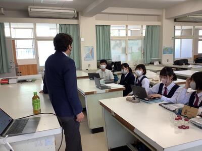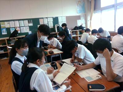 6限目は天草市役所水産振興課の方から「天草の漁業について」、7限目は文化課の方から「世界遺産の崎津集落について」のお話をいただきました。最後の質疑・応答でも活発に質問する姿が見られました。地域の歴史や課題を知り、今後の探究活動に繋げてほしいです。