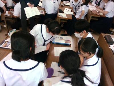 生徒たちの「研究報告書」を見ると、先行研究をしっかり調べており、自分たちの研究の方向性は決まりつつあるようです。反面、具体的にどのような点を調べて数値を検証するのか等、研究内容の絞り込みが必要な班が多くあります。今日は先生方が各班を回り、研究について様々なアドバイスや核心をついた質問をしていました。今の段階でしっかり研究内容や方法についてアイデアを出し合い、内容を練っておくことがよい研究につながります。後悔のないテーマ設定ができますように!