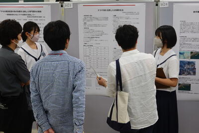 この発表会は、日本動物学会九州支部、九州沖縄植物学会、日本生態学会九州地区会の3学会が合同で開催しているもので、高校生のポスター発表に加えて、大学生や大学院生の発表も多数出展されていました。