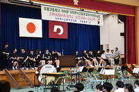 本校は、歓迎セレモニーとして吹奏楽部と書道部による演奏等のパフォーマンスを行いました。