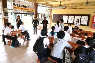 在マレーシア日本国大使館で、実際にマレーシアに貢献されている日本人の方から、国際貢献の在り方などを学びます。