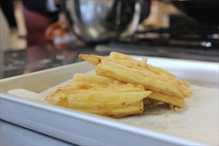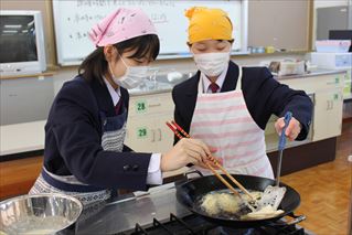 1年生の調理実習です。本日は天草の郷土料理「がねあげ」に挑戦です。