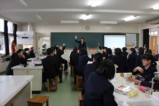 天草と高森という遠く離れた場所によるティームティーチングで,高森高校の子供たちが活き活きと授業に取り組む様子が見られました。