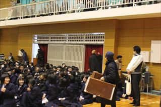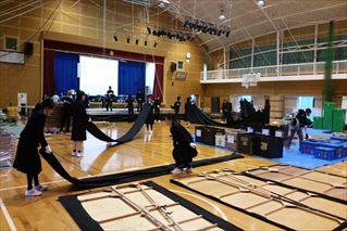 大型トラックによって運び込まれた舞台装置は迫力満点!倉岳校・定時制の生徒さんも一緒に楽しめる空間となりました。