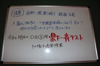本校でも廊下に荷物を出し、真剣に問題に向き合っていました。学年掲示板にも激励のメッセージが書いてありました。