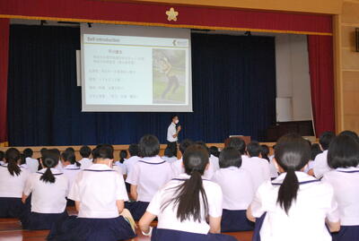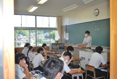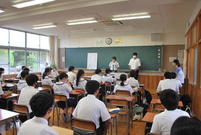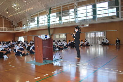 入学したばかりで高校生活のイメージがついていない1年生に対して、実習生が自らの高校時代の話を踏まえ、高校生活を充実させる方法を紹介してくれました。