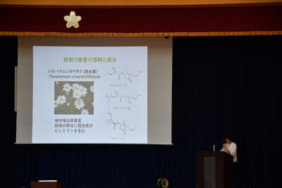First, he talked about the importance of conducting thorough preliminary research on the research subject students have come up with, and the specific methods for doing so. He explained that by gathering as much reliable information as possible, students can formulate more convincing hypotheses and experimental designs. He explained in an easy-to-understand manner how to distinguish reliable information from the mishmash of information flooding the Internet. He also explained the essential points for setting up a policy for successful research.