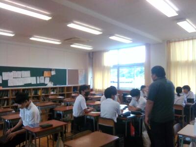 さて、今日も授業最後の10分間で「ワクワク交流タイム」を実施しました。先週とは違う班・違うメンバーが2年生の各班を訪問します。正直なところ、話がはずんでいる班もあれば、両者とも恥ずかしそうに下を向きがちな班もあるようです。これから上級学校に進んだり就職したりする3年生にとって、自分の班以外の人や学年が違う人と意見交換するのは、今後につながる大事な経験となるに違いありません。この交流の機会は、今後も不定期で設ける予定となっています。2年生の研究が進むにつれ、さらに活発な意見交換ができることでしょう。先輩方、頼りにしています!