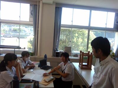 7時間目には、生徒たちは出来立てほやほやの研究班(今日で班編制がほぼ確定しました!)で今後の研究計画を話し合いました。田丸先生やASⅡ担当の先生方、教育実習生の先生ともディスカッションをしながら、だんだんと具体的な活動のイメージもつかめてきたようです。来週からは班の研究内容によって2階(地学室)と3階(物理室)の2箇所に分かれ、本格的に研究が始動します。これからが楽しみですね!