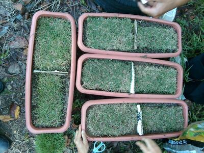 Today, the "Turf” group went outside for their research. They have been conducting an experiment on how to plant winter turf on top of summer turf, and grow turf that does not die all year round. This time, they were maintaining the summer turf before planting the winter turf.