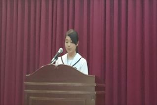 代表して、2年生の小野さんが「自分で言いたいことをしっかり伝えるためにも、これからもっと勉強したいと思いました。また、10月には『天草にきてよかった!』と思ってもらえるように準備を整えて、お迎えしたいと思います!」と元気に挨拶をしました。