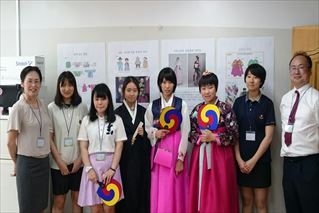 授業で絵馬を書いたり、チマチョゴリを着たりして韓国の文化に触れたほか、ポップソングコンテストというイベントでダンスを披露したり、英語で天草高校や天草についてのプレゼンテーションをしたりしました。