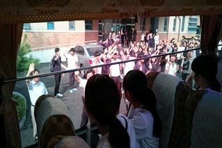 本日は、親善派遣団(生徒9名、職員2名)が朝6時前に学校を出発し、福岡空港から空路で韓国に向かいました。
