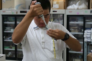 野下くんは、ガン細胞に関する研究を行っておられ、細胞を培養し、遺伝子を自在に切り貼りしながら研究されています。
