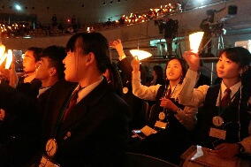 分科会の内容を発表し、最後は「稲むらの火」をイメージしたイルミネーションを会場全員で表現しました。
