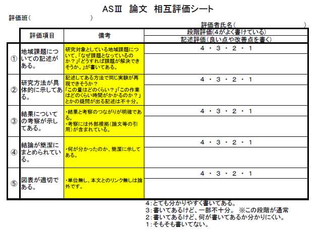 ルーブリックとアンケートは天高HPのSSH開発教材のページに掲載していますので詳しくはそちらをご覧ください。