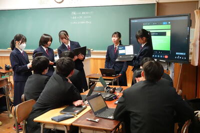 6限目は、これまでスキルアップ講座で学んできた、情報やデータを収集するスキルやそれをわかりやすい形に処理し表現するスキル、分かりやすく相手に伝わるプレゼンのスキルなどを活かしてグループで協働してスライドを作成し、グーループ同士でプレゼンをし合う活動に取り組みました。スキルアップ講座で学んだスキルをどれだけ活用することができたでしょうか?3学期はいよいよ各自が研究したい分野やテーマに基づいてグループをつくって研究活動を進めていきますスキルアップ講座で学んだスキルを活かしてより良い研究に繋げていけるように頑張りましょう!