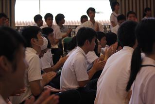 9月1日(金)の始業式後に、8月に行われた「SSH生徒研究発表会」の参加報告を全校生徒・職員対象に実施しました。