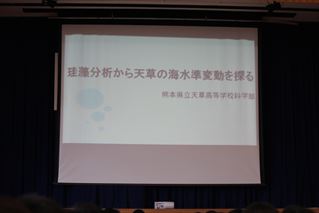 科学部の天草の海の海水準変動を探る研究を、英語バージョンにグレードアップして発表しました。