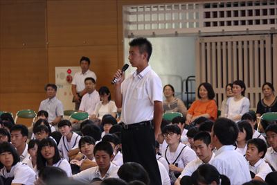 最後の質疑応答の時間には「スキューバダイビングで調べる時間はどれくらいか」「大学では英語の講義ばかりなのか」などの質問が出ました。