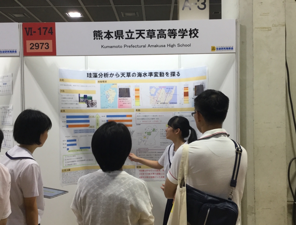 10月29日(日)に崇城大学薬学部キャンパスで生徒理科研究発表会が行われました。生徒理科研究発表会「サイエンスコンテスト2017」では、物理・化学・生物・地学の各部門に分かれ、プレゼンテーション形式で研究成果を発表します。天草高校は生物部門2点、地学部門2点のが発表を行いました。テーマと各賞は次の通りです。