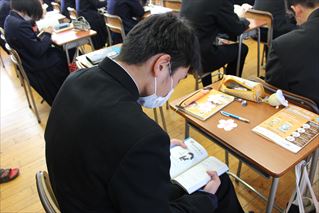 学年末テストが終わって、朝読書が再開されました。全員テスト前に借りていた本の続きを読んでいました。でも、中にはテストの疲れで寝ている人も!