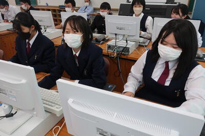 クロームブックとデスクトップPCを駆使して論文を作成している生徒もいました。