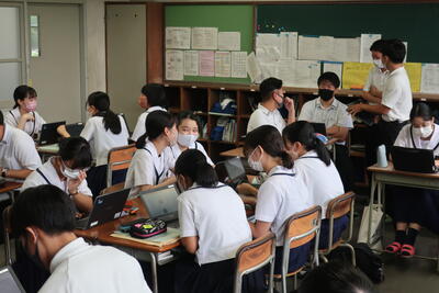 7月12日(火)に予定されている天草高校スーパーサイエンスハイスクールARP探究成果発表会に向けて、各班データ収集やポスター・スライド作成を行いました。崇城大学の田丸先生が来校され、アドバイスも頂きました。
