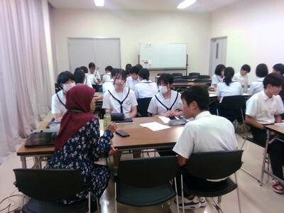 On August 21st, the 2024 English Camp by Amakusa High School with Kumamoto University students was held at the Amakusa City Center. Five exchange students from Kumamoto University came to Amakusa for this camp. Eighteen high school students and one junior high school student attended the camp.