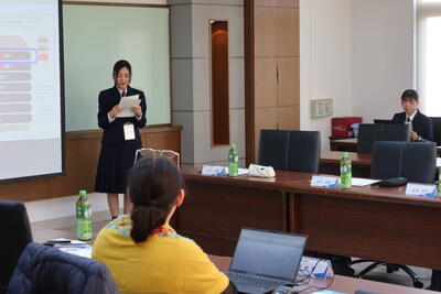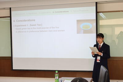 最後には実験結果を班を代表して説明し、簡単なものではありますが国際共同研究を行っていました。