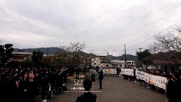平田校長から「今こそ、図南橋から飛び立つとき!」と激励があり、応援に来ている同級生とともに校歌の1番が送られました。