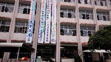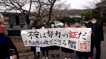 受験生の背中を後押しする横断幕や、1・2年生全員の見送りを受け、受験会場である熊本大学に向けて出発しました。