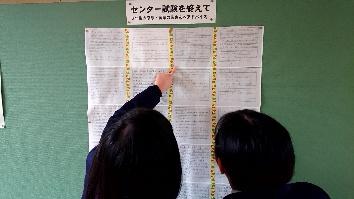 現在、2年棟の掲示板には、センター試験受験を終えた3年生からのアドバイスが掲示されています。