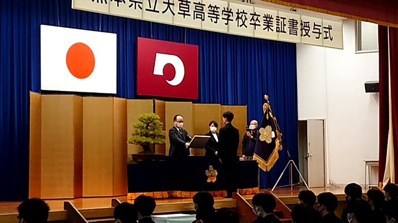 熊本県がんばる高校生表彰や高体連表彰、高文連表彰、高野連表彰、図書部会表彰、学校保健委員会表彰、3ヵ年皆勤賞といった様々な表彰が行われました。