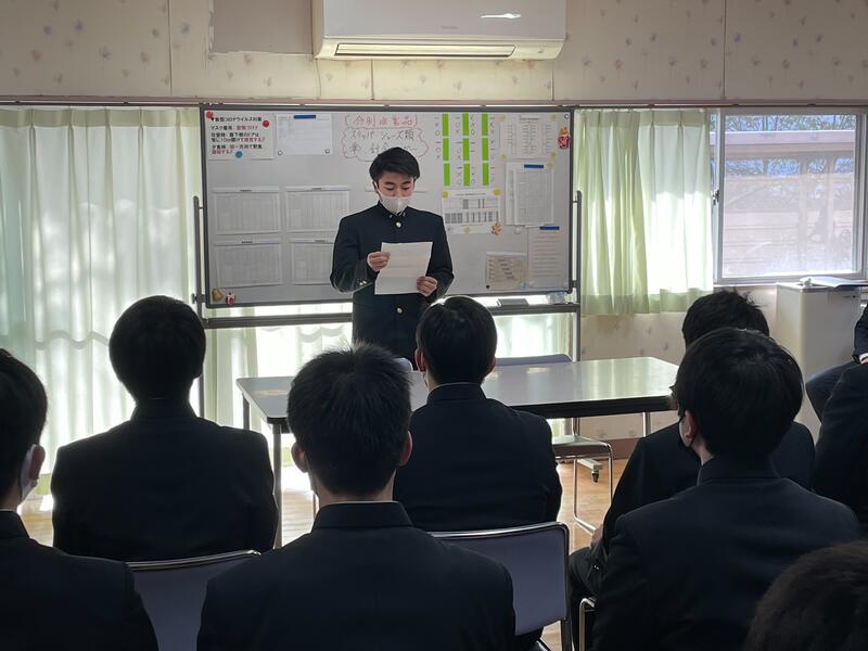 2月14日(月)の終礼時に、1・2年生全員に向けた杉尾生徒会長からのお知らせがありました。