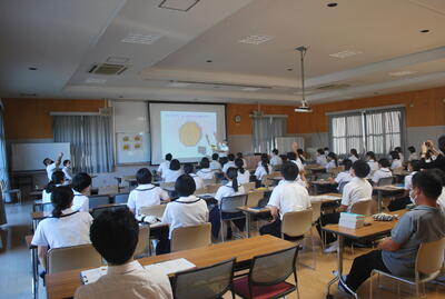 教育学部で何を学ぶか、教員に求められる資質、入試制度等について話がありました。