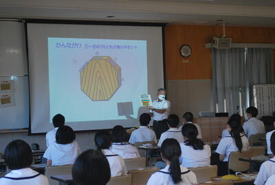 熊本大学教育学部の先生と、本校の卒業生である教育学部4年の江﨑君を迎え