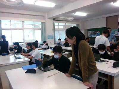 天草高校では全ての科目で探究場面を設定して探究型授業の実践を行っています。生徒たちがより深く・主体的に学んでいくためには、1つの教科で得た学びをまた別の教科で実践・発展させていく必要があります。生徒たちの探究的な学びを効果的にサポートできるよう、私達教師も連携し、日々授業の改善に努めていきます。