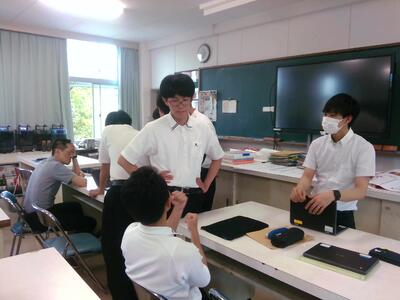 In today's AS III, Mr. Miyazaki, SSH head teacher, first explained about the “Science Inter-High @ SOJO” to be held at the end of July. Then we had a tentative evaluation of C2, in which they will be evaluated on "Consider and Draw Conclusions." At the moment, some groups can explain the verification of their hypotheses using numerical values, while some others are still struggling. Each group had discussions about the current situation and what they should accomplish by the time of their main evaluation scheduled in July.
